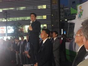 安倍首相が来川。新藤元総務相とともに、外交、安全保障、経済、福祉と幅広い分野に渡り政策を語り、自民党と新藤候補予定者への支持を訴えました。ビックリしたのが、安倍首相が「川口にも海外からの観光客が増えてきていますが、彼らに人気があるのが、『鳩ヶ谷ソース焼きうどん』だそうで……」と仰ったこと。いやはや、鳩ヶ谷ソース焼きうどんも全国区になりました。^_^